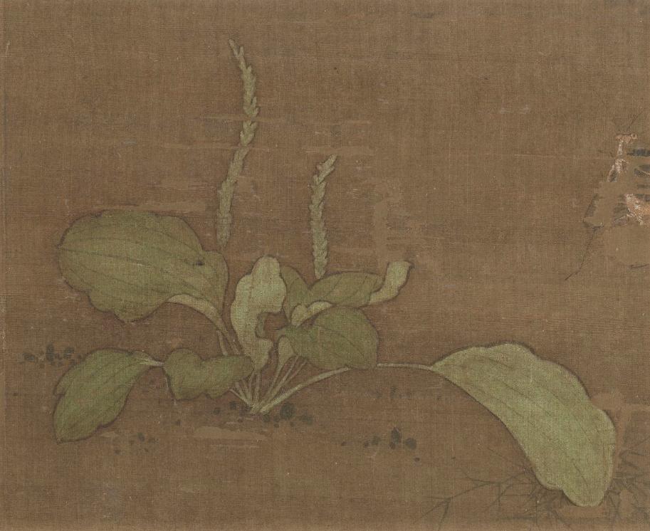 清 金廷标 《儿童斗草图》(局部) 故宫博物院藏一个红衣服小孩蹲在地上采一棵车前草。看来这小孩的斗草经验很丰富,掌握了斗草的诀窍,那就是车前草。