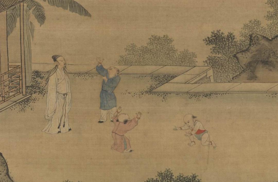 明 周臣《闲看儿童捉柳花句意图》(局部)台北故宫博物院藏