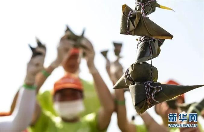 ▲在贵州铜仁碧江区锦江河上,人们在龙舟赛上竞逐。新华社发(伍卫东摄)端午赛龙舟这一习俗由来已久,最热闹也最能博人眼球。沈从文在《边城》中为我们现场直播了这一盛况:“大约上午十一点钟左右,全茶峒人就吃了午饭,把饭吃过后,在城里住家的,莫不倒锁了门,全家出城到河边看划船。”“划船的事各人在数天以前就早有了准备,分组分帮,各自选出了若干身体结实手脚伶俐的小伙子,在潭中练习进退。船只的形式,与平常木船大不相同,形体一律又长又狭,两头高高翘起,船身绘着朱红颜色长线,平常时节多搁在河边干燥洞穴里,要用它时,拖下水去。每只船可坐十二个到十八个桨手,一个带头的,一个鼓手,一个锣手。桨手每人持一支短桨,随了鼓声缓促为节拍,把船向前划去。带头的坐在船头上,头上缠裹着红布包头,手上拿两枝小令旗,左右挥动,指挥船只的进退。擂鼓打锣的,多坐在船只的中部,船一划动便即刻蓬蓬铛铛把锣鼓很单纯的敲打起来,为划桨水手调理下桨节拍。一船快慢既不得不靠鼓声,故每当两船竞赛到剧烈时,鼓声如雷鸣……”