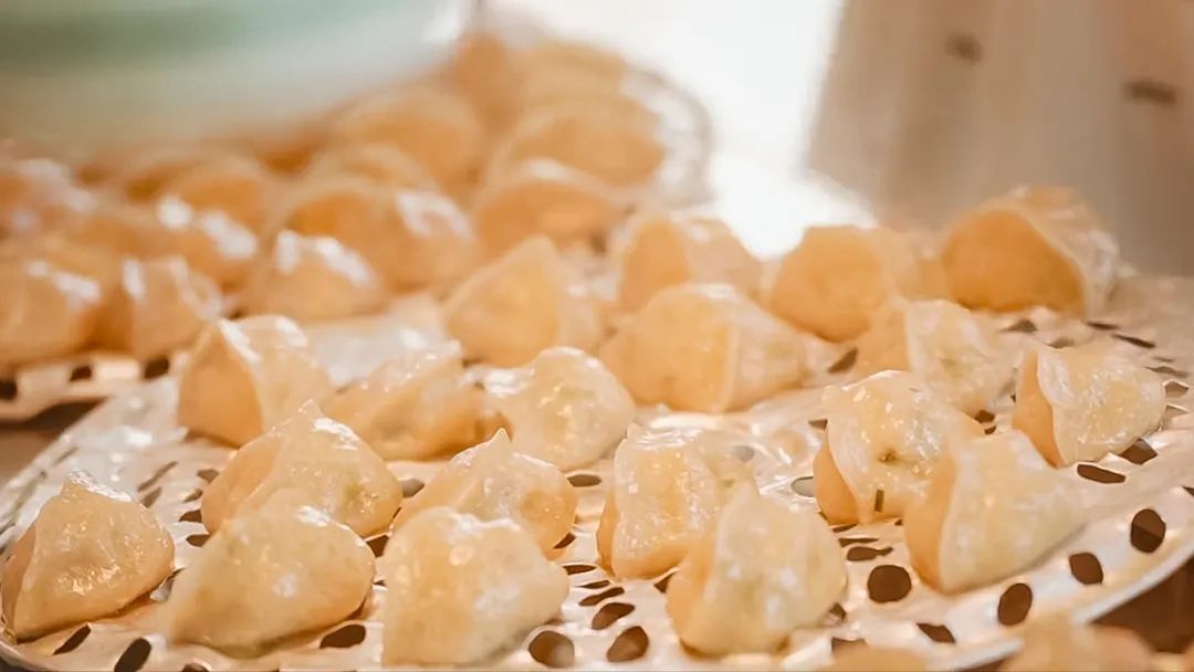 做法和普通的水饺差不多,但是个头要比水饺更大一些。白色的饺子隔水蒸熟后就变成了半透明的。