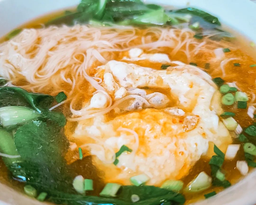 永嘉本地的传统纱面里有新鲜的本地猪腿肉,独具温州味儿的洞头虾干,庆元的香菇干,再加一个永嘉土鸡蛋制成的荷包蛋。端上桌就有一股淡淡的酒香,香香滑滑特别好吃。(开车的人记得选择无酒版本)