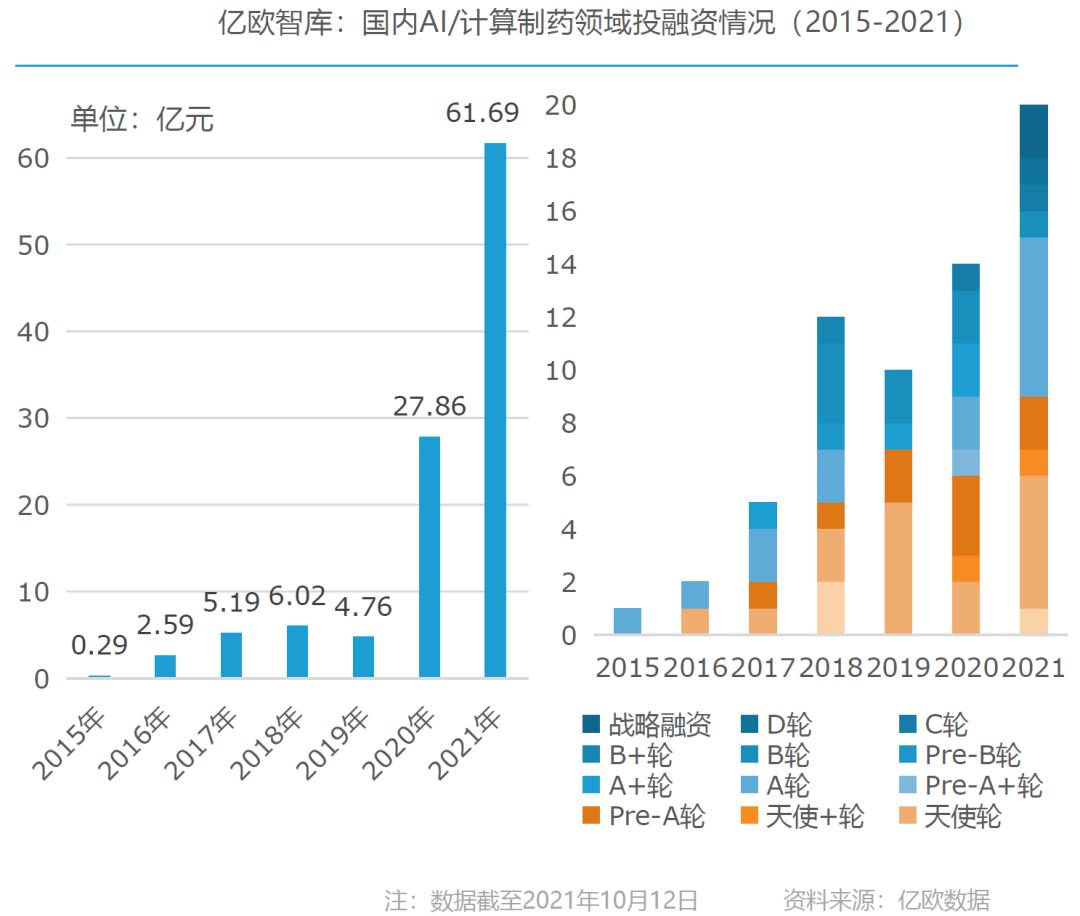 图:国内IT巨头布局AI制药数据平台 来源:亿欧智库初创企业是AI制药的主力军,是AI制药的主要推动者和实践者。2021年,全球融资总额约为266亿元(超42亿美元)。其中,中国在该领域的融资金额超过90亿元。