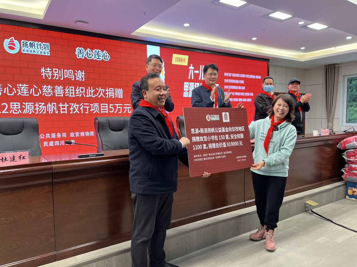 为此,2022年4月,中华思源工程扶贫基金会联合故宫博物院、国家广播电视总局公共服务司发起“2022思源扬帆甘孜行”公益活动,指导思源·新浪扬帆公益基金、故宫出版社分批向甘孜州捐赠“故宫小书包”、“思源方舟安全校服”等教育助学物资,为甘孜州学生创造条件学习、传承优秀的中华民族传统文化,并助力保障受助学生在上学放学路上的交通安全。“思源扬帆甘孜行”公益活动启动后,得到了社会各界的广泛参与,微博、字节跳动、小米、善心莲心、中骏公益鼎力支持,广大爱心网友也踊跃捐赠,单霁翔、王心凌、赵雅芝、王祖蓝、丁真、岳丽娜等名人明星积极助力,帮助更多的甘孜州学校、学生受益。