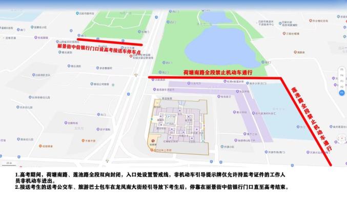 2、南关小学考点:学校周边荷塘路、莲池路全段实行交通管制