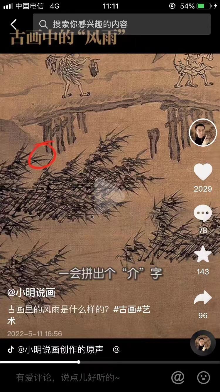 那么古猗园初定名为借园又有什么含义呢?与上述园林命名又何相同或相异之处呢?借,顾名思义,有暂时使用的意思。明嘉靖初年,第一任园主人为徽籍闵姓,乡土观念浓厚的园主或许是用“借”字表达自己是客居南翔、暂借于此之意。事实上,“借”字还有凭借、依靠之意,这与第一种推测似乎有矛盾的地方。令人欣喜的是,笔者在古画中发现,竹叶的形状除像“个”字外,还像“介”字,而介与借谐音,古画中的“疾风骤雨”常用一个个“介”字表达。