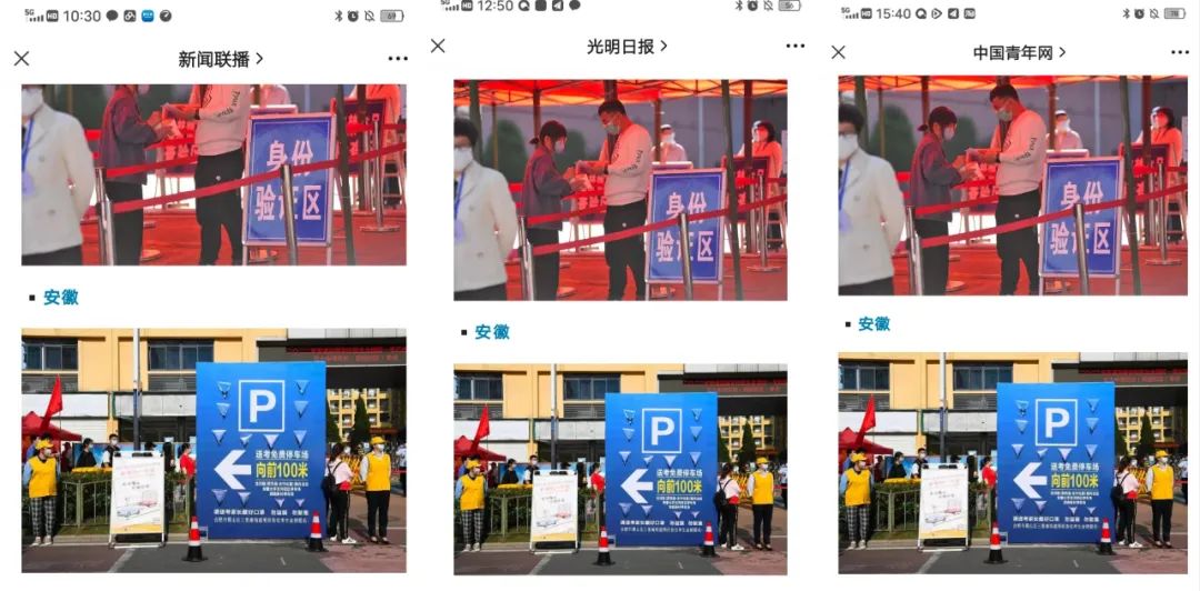 6月7日上午,2022年高考首日,蜀山区三里庵街道在五十中西园校区考点附近,设置了多个大型温馨指示牌,指引附近免费停车场和休息点具体方位,方便接送考生的家长停车和候考休息。这一暖心做法,受到了央视《新闻联播》《光明日报》以及《中国青年网》微信公众号的关注。