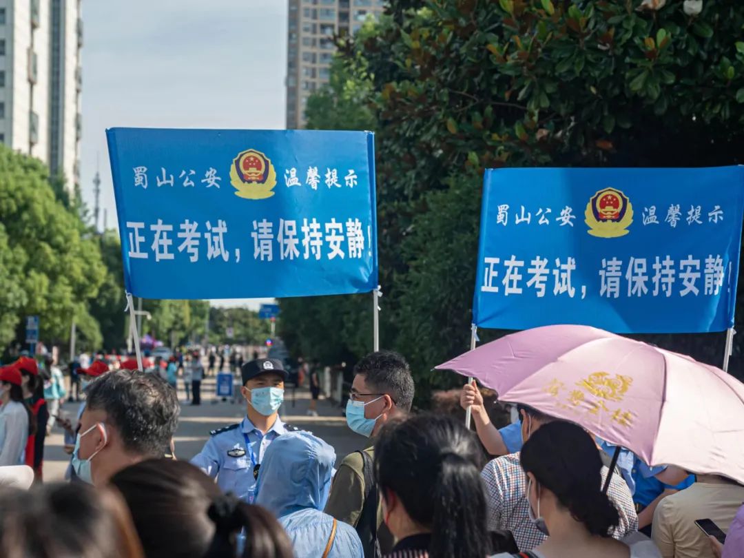 为给考生营造一个安静的考试环境,合肥市公安局蜀山分局在全区各高考考点,展示“正在考试,请保持安静”的标语,提醒考场外人群降低嗓音,保持安静状态。据了解,为给考生营造安静的考试环境,该局还组织民警在全区各考点高举“正在考试,请保持安静”标语,提醒考场外人群自觉降低嗓音,实现整个考试过程保持安静,此创新举措获得了考生家长们的一致好评。