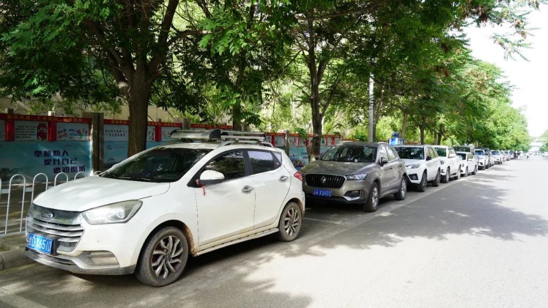 一条绿丝带、一张“爱心助考”车贴,200多辆“爱心送考”车,穿梭在夏日的街头。司机师傅们怀揣一颗赤诚的心,为高考学子开展免费乘车服务,听到考生们一声声的道谢,“爱心送考”车的司机师傅们倍感欣慰。“刚去武川小区接过来的,路况我们都比较熟悉,一路上比较畅通,安全、准时送达,我也就放心了。”白银学雷锋志愿服务车队队员赵贵权说,提前大家都对考场周边的路况做了了解,接到考生后,都会选择比较通畅的道路,确保考生准时准点到达考场。中午十一点,他们会整齐的排好队在考点附近的路口等候,随叫随走。