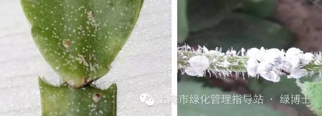 家庭花卉中的蚧壳虫常见的有盾蚧、软蚧、粉蚧,体色多为褐色、白色等。其中盾蚧、软蚧等蚧虫固定后足退化,虫体表面分泌蜡质形成保护壳。粉蚧体表覆盖白色蜡质物,酷似身披白粉,有足会爬行。喜好植物的嫩梢、叶柄、叶背、叶鞘、分枝的缝隙等处,有的蚧虫种类还会危害植物的根系。南方观叶植物、仙人掌(球)类、蟹爪兰等多肉植物容易受蚧壳虫危害。防治方法:对植物进行适当修剪,增强植株的通风透光。局部少量发生,可用旧牙刷进行刷除。如果数量较多,参考防治蚜虫的药剂。