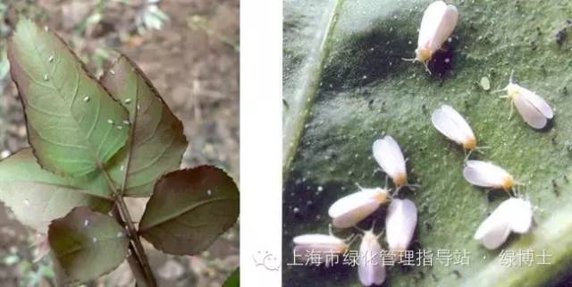 温室白粉虱,成虫翅膀白色,是家庭养花常见的粉虱种类。其若虫体型微小,附在叶背刺吸危害,不易被察觉。月季、一品红等花卉比较容易发生。防治方法:选购花卉时,仔细翻看植物的叶背,避免购入有虫植株。防治药剂可参考蚜虫药剂。