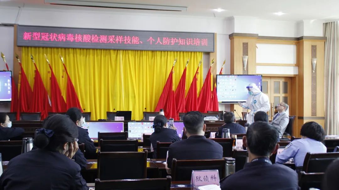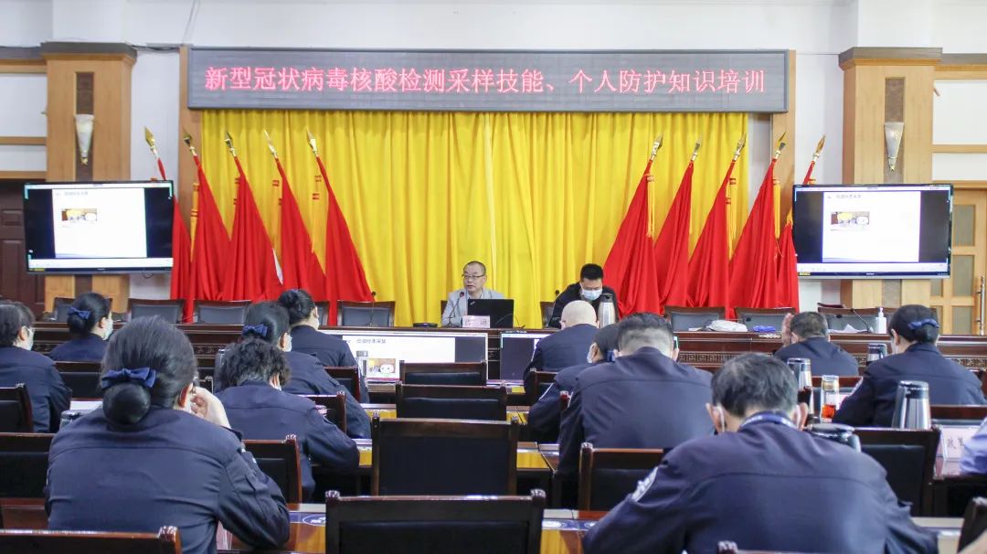 ▲邀请专家开展专题培训。5月23日,监狱邀请凉山州预防控制中心卫生检验所所长、主管检验师肖琳以及自贡市疾病预防控制中心副主任检验师袁宗智来我狱针对样本采集以及防护安全进行了培训和指导。