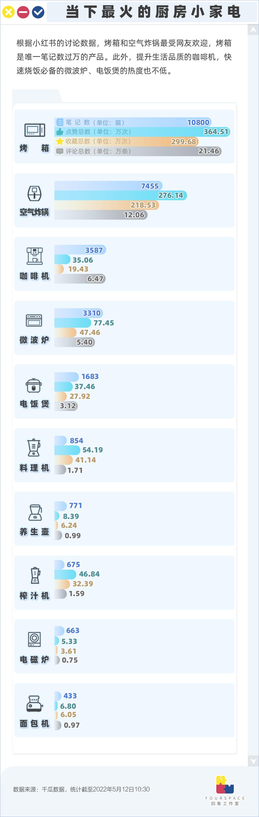 而在社交平台上热度最高的烤箱,其实才是同比下降最多的,销量只剩去年同期的六至七成。背后原因或许是想买烤箱的人早已上车,而小家电的换代速度不似手机,在功能未出现突破性革新的前提下,没有什么换新的必要。