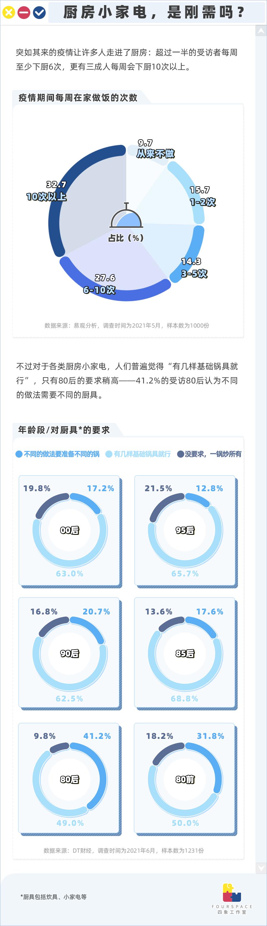 虽然厨房里的小家电种类越来越丰富,但忙于工作的“社畜”们真的能用得上吗?究竟有多少人会在家里做饭?