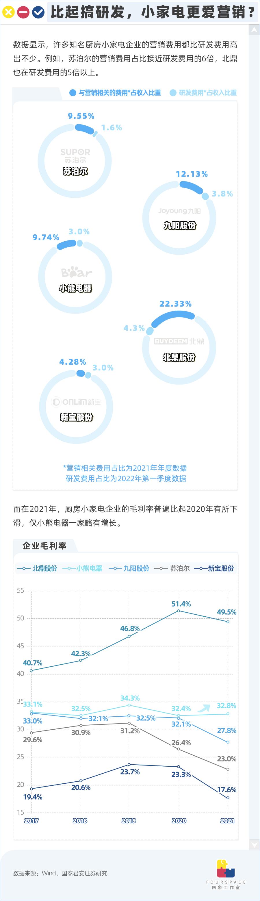 比较厨房小家电领域各大企业的财报,可发现一个业内普遍的现象——与广告、营销相关的支出,远高于产品研发的支出。