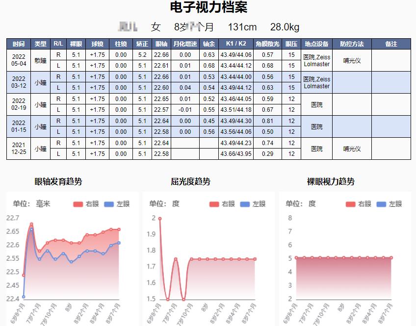 我们建议临近或者已经近视的孩子每3个月查一次眼轴、验光、眼压,来监控近视的发展情况,时间长了会产生厚厚的报告单,为了方便整理,我们需要借助电子视力档案的帮助。