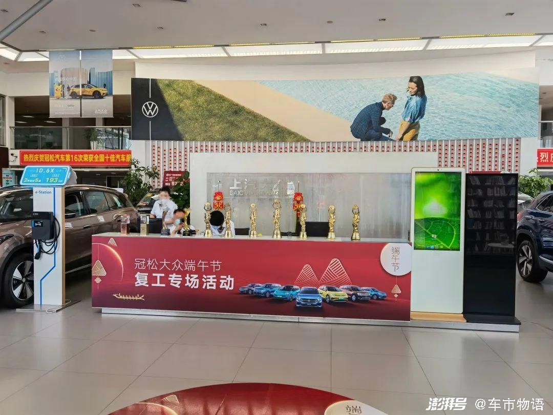 上汽大众经销商(图源:车市物语摄)为何会有3万元补贴?在市级政策后,上海嘉定区加码补贴刺激汽车消费,印发了《关于“助企纾困、助长消费、助力就业”的若干产业扶持政策》的通知。其中有一条引发了轩然大波——鼓励个人消费者购买新能源车和燃油车,并在上海市内上牌的,给予购车补贴,车价15万元以下的给予1万元补贴,车价15万元(含)以上的给予2万元补贴。
