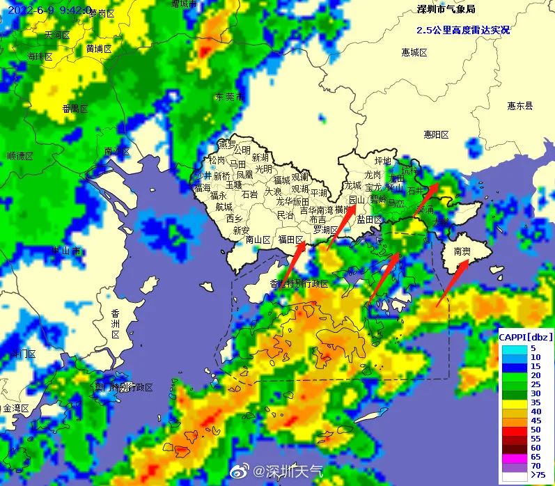 根据@深圳天气 消息受雷云雨团影响