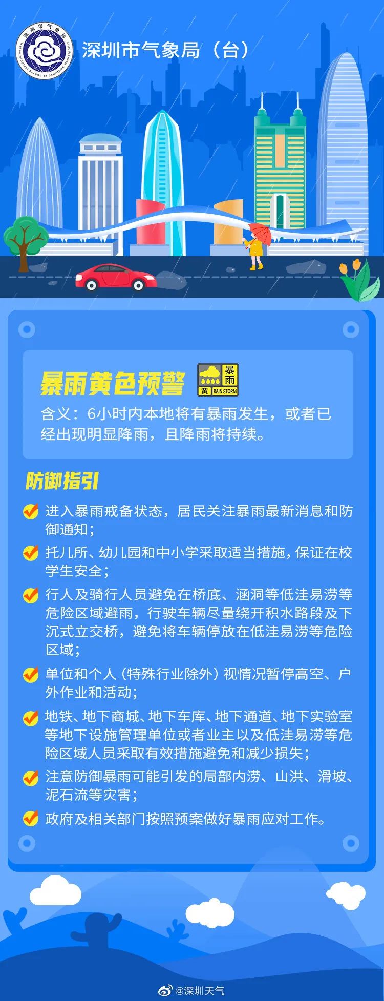 本稿件可能引用或转发互联网上已公开发表的内容。如您对相关内容的版权问题存有异议,请您与我方版权管理部联系,我们将及时处理。联系电话:0755-83518718,邮箱:pxxq@szszd.com.cn。原标题:《深圳发布分区暴雨黄色预警!今明两天仍有暴雨,一风景区闭园!》