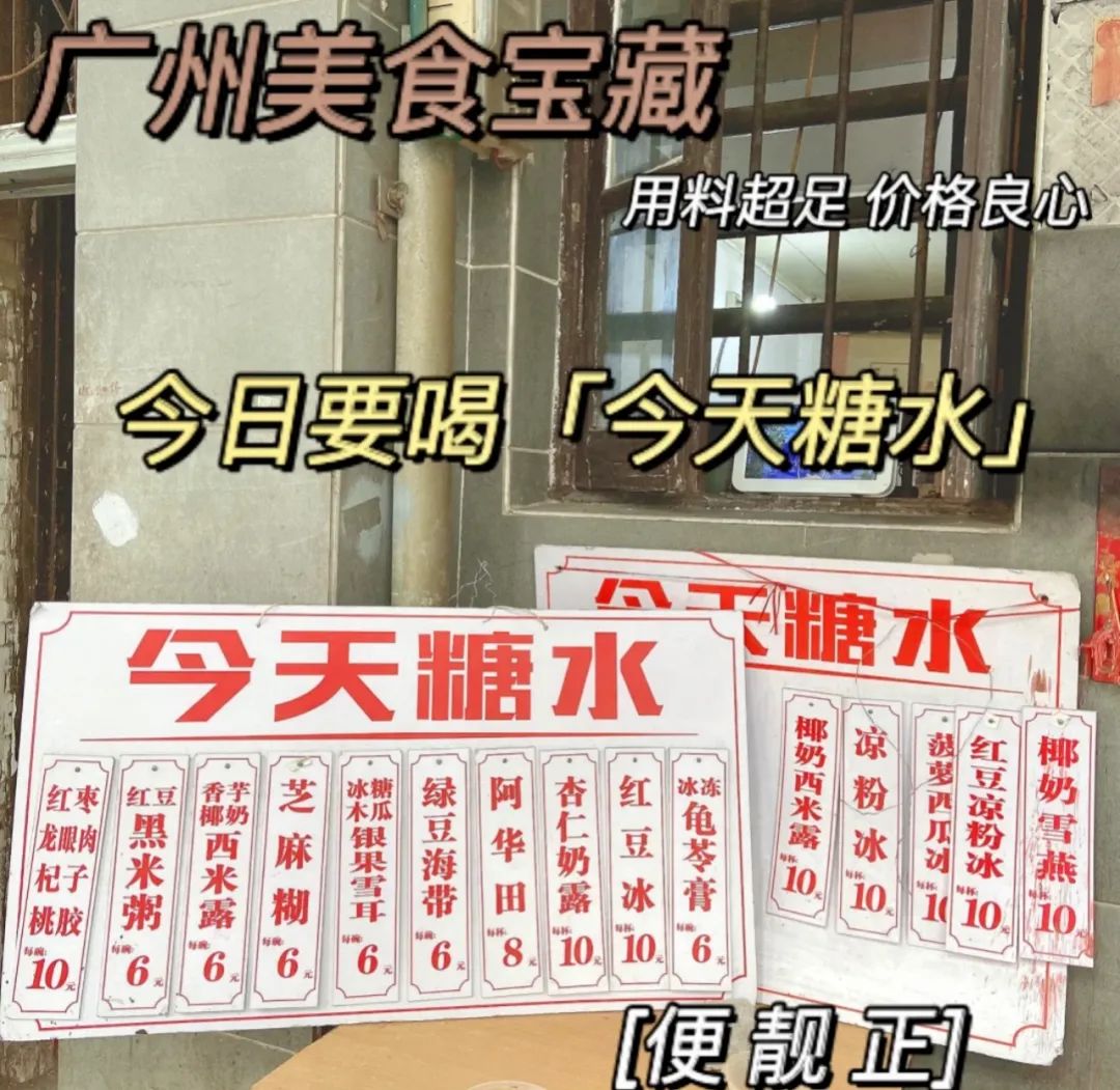 绿豆沙、芝麻糊、番薯糖水等传统糖水就是老广日常的生活,而现在的广州糖水更是从平价到贵价的都有,如同百花齐放的一种文化。