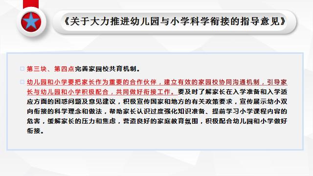教育部《关于大力推进幼儿园与小学科学衔接的指导意见》中指出:幼儿园和小学要把家长作为重要的合作伙伴,建立有效的家园协同沟通机制,引导家长与幼儿园和小学配合,共同做好幼小衔接工作。可见,在幼小科学衔接工作中,家园合力是非常重要的。