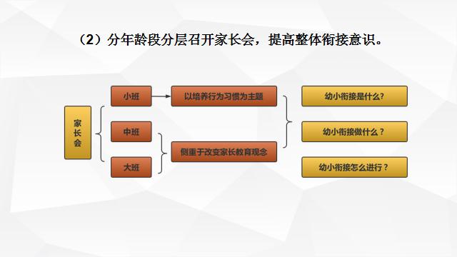 2.分层次分年龄段召开家长会,提高整体衔接意识。