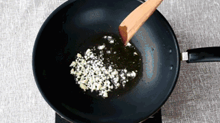 2、锅内放入少许食用油,将切好的蒜片和姜丝加入锅内爆炒至出香味;