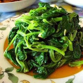1、将苋菜、苦麦菜清洗干净并切段状备用;