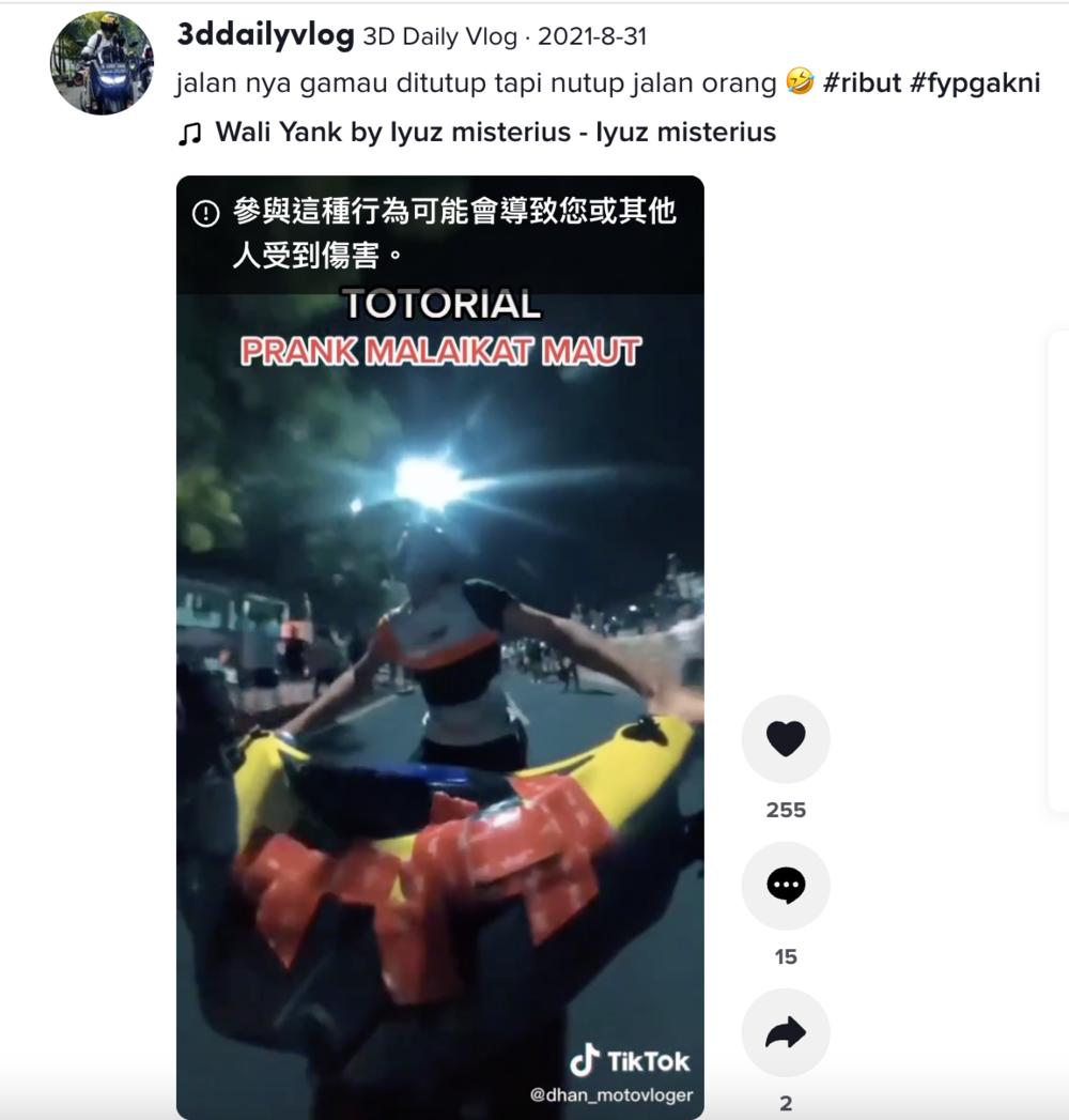 这种行为被当地青年称为“prank malaikat maut”,大致可以理解为“死亡恶作剧的天使”,内容形式多种多样,一言以蔽之就是与死神共舞。