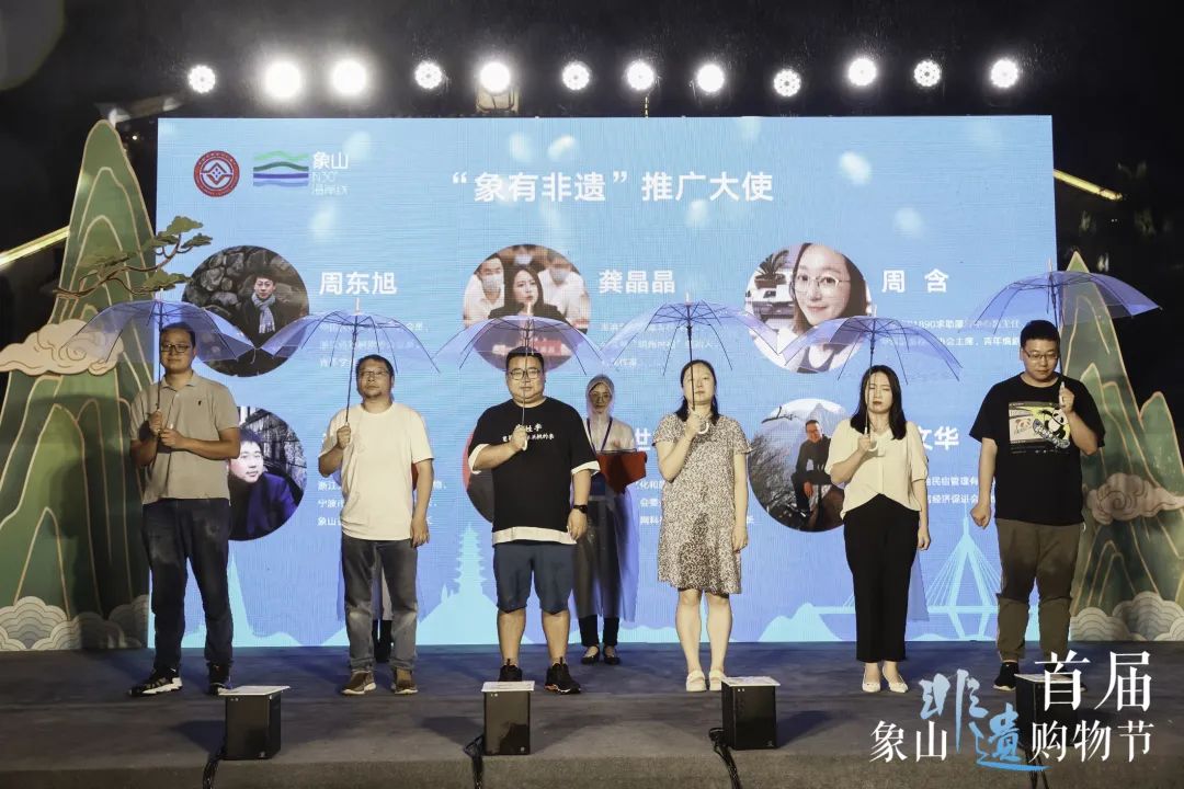 开幕式现场,重磅推出了象山海洋渔文化之旅、海岛探秘之旅、行走茅洋之旅三条最具非遗特色的旅游线路,并为14家非遗传承基地授牌,聘任周东旭、龚晶晶、周含、李健、陆世栋、聂文华6位为“象有非遗”推广大使。