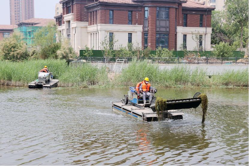 2022年6月11日上午,随着几台多功能两栖作业车下水作业,津门湖水系生态修复工程正式启动。这种两栖作业车是由河北工业大学自主研发的,可处理复杂环境下的水系治理问题。