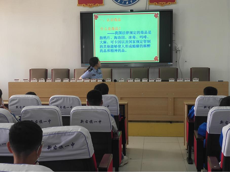 6月9日,呼伦贝尔市公安局禁毒支队副支队长朝格吉乐带队一行3人,与新右旗禁毒办共同深入到新右旗第一中学开展禁毒宣传教育主题班会。