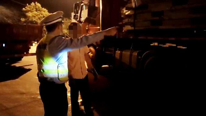 5月8日22时40分许,宁德高速交警支队三大队民警夜间巡逻时,发现一部重型半挂车上装载的货物向侧方倾斜,行驶过程中货物摇摇欲坠,随时可能散落路面。民警立即通过喊话器,引导该车到就近加水点接受检查。经了解,车上装载的货物系工程材料,驾驶人仅使用几根皮绳牵引固定,经过弯道时,货物受惯性影响,向侧方倾斜。