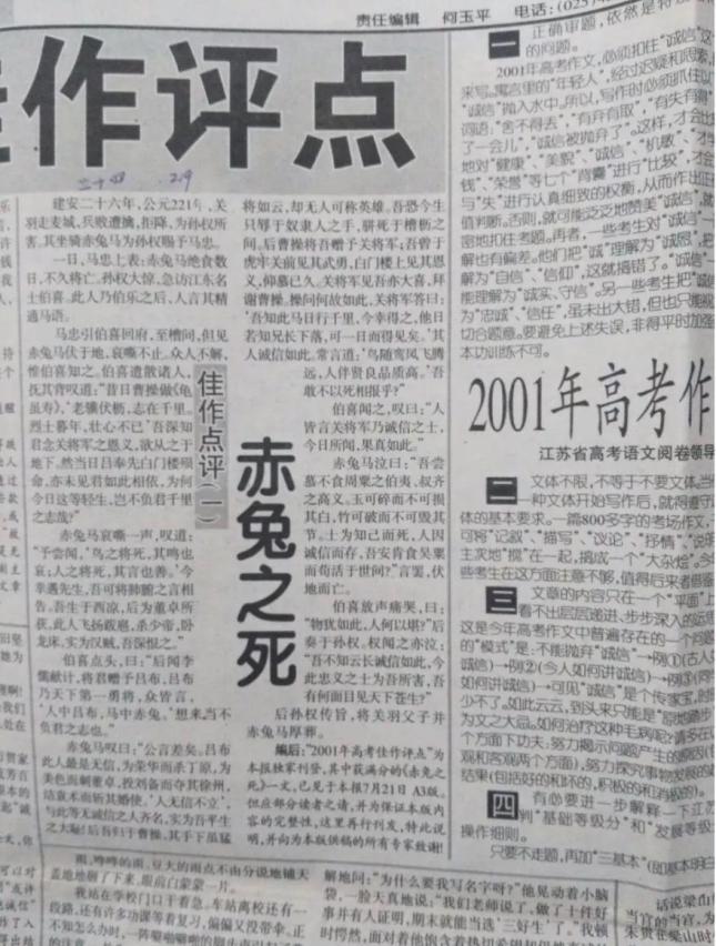 直到现在,《中国日报》在做“高考40年之‘最’大盘点”时,《赤兔之死》还是那篇最有名的高考作文。