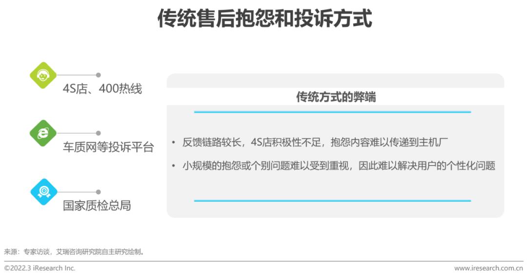 目前我国汽车售后问题反馈手段较为落后,仍以4S店和质保热线为主,部分企业的售后问题清单仍需通过从CRM中人工导出,导致售后问题发现缓慢,整改不及时。虽然也出现了以第三方直播或记者线下走访进行问题反馈的模式,但仍然治标不治本。而建立多渠道的以数据驱动的反哺系统,可以从APP、售后等渠道实时回传用户抱怨和维保信息,经过数据分析后按照时间周期识别出不同车型、品牌的趋势性问题,帮助工程师快速的根据问题迭代数模或相关软件,从而提升发现和解决用户个性化/规模化问题的能力。同时可帮助研发人员快速进行知识积累,弥补研发缺陷,实现售后维保数据对于研发环节的价值提升。