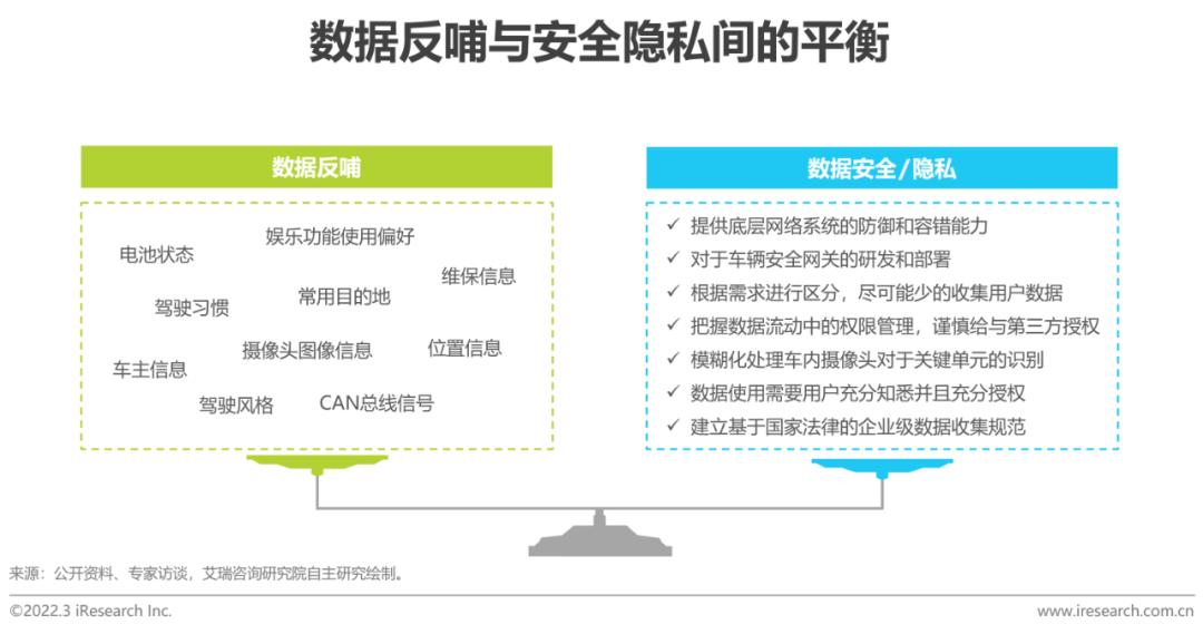 在汽车智能化时代的背景下汽车数据的收集和使用不可避免,但也出现了安全和隐私泄露的风险。欧洲ADAC汽车协会针对33个品牌的237款车型进行了安全测试,结果显示99%的车辆能够被黑客解锁开走,整个过程最短仅需18秒。随着《汽车数据安全管理若干规定(试行)》和《中华人民共和国个人信息保护法》等文件的出台,对于数据的合规使用提出了更严格的要求。因此车企在采集和利用数据时,在保证数据安全的前提下,需要基于用途最小化的原则进行数据收集,例如采集用于自动/辅助驾驶的感知数据时避免车内数据的收集;用于驾驶员疲劳监测的数据尽量将图片或视频转换为2D/3D点云图像等,如此才能做到合理地采集数据并实现数据反哺。