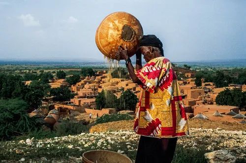 我曾到一眼水井旁边,看到黑人妇女单独或结伴前来取水,照例都先喝上一顿,然后头顶着葫芦、水桶等兴高采烈而归。在提水的同时也往预制的一些水槽中灌满了水,这是为牛羊预备的。