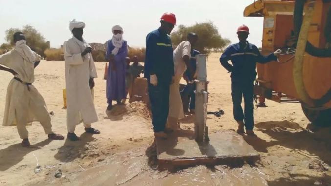 在阿加德兹和马拉迪地区,我打井队在没有水文地质资料,面对沙漠乱石,凭借技术和经验,请教当地老人,在一二百米的深处打井出水、建好了若干眼水井,成为当地居民的大事情。