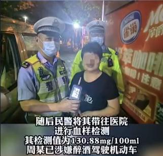 民警立即上前追赶,驾驶人此时已躲藏起来,经过民辅警一番搜寻,最终在一处绿化带内找到驾驶人周某。随后民警将周某带往医院进行血样检测,其检测值为130.88mg/100ml,周某已涉嫌醉酒驾驶机动车。
