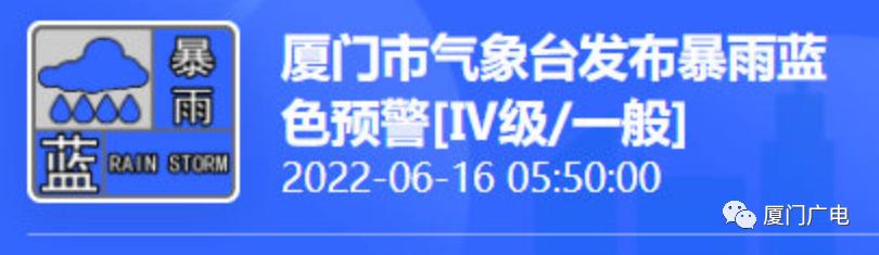 05时50分厦门市气象台变更发布暴雨蓝色预警信号: