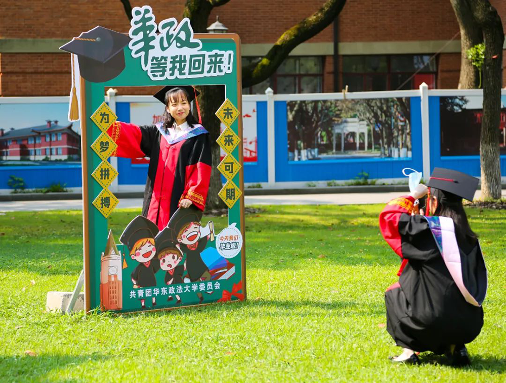 2022届华政毕业生在学校打卡留影。