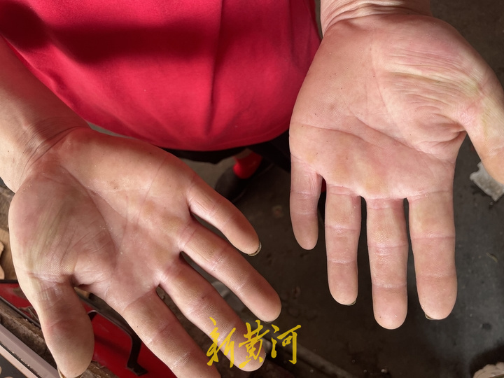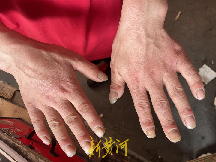 这样的收入是靠着夫妻俩共同拼搏得来。今天早上,他和妻子四点半就开车去到水果批发市场,把一天的货量备齐,五点半到便民市场把水果卸下,上千斤的货品两人需要忙碌一个多小时。长期的搬运水果,吴要升的手上布满了厚厚的老茧,正常的指甲磨损变形,满手都是“劳动的痕迹”。