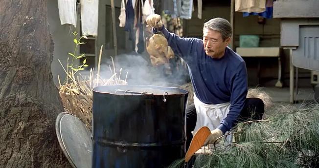 员工叔叔赶过来,和老爷爷打了个招呼:“大爷,上次的羊肉卷卖完了?”