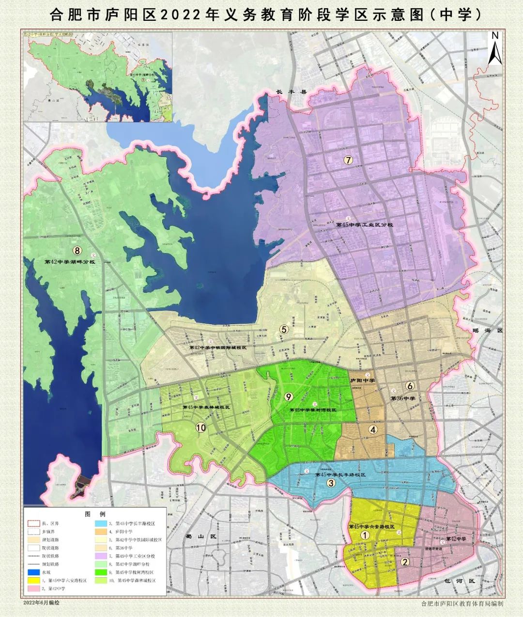 22.合肥市第四十六中学:庐州大道以西,方兴大道以北,玉龙路以东,紫云路以南(不含观湖苑)。