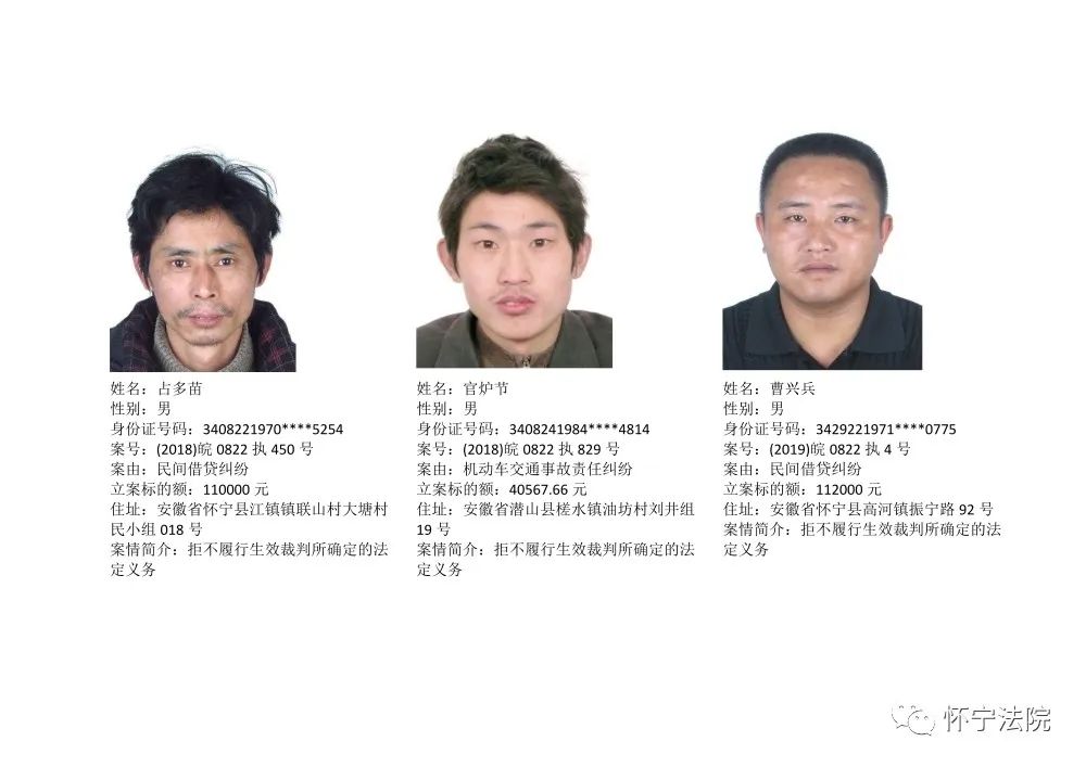 原标题:《怀宁法院“江淮风暴”执行攻坚战失信被执行人曝光台(第一批)》