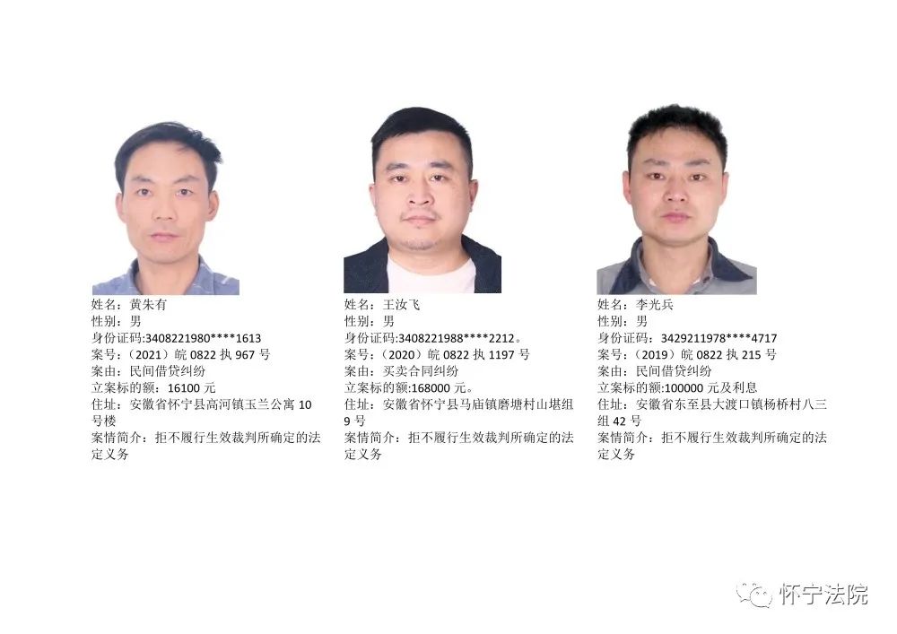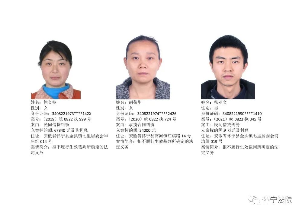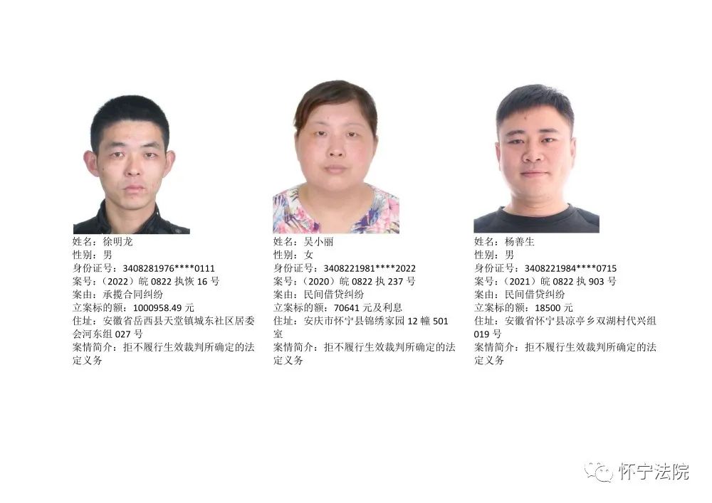 怀宁法院“江淮风暴”执行攻坚战失信被执行人曝光台(第一批)