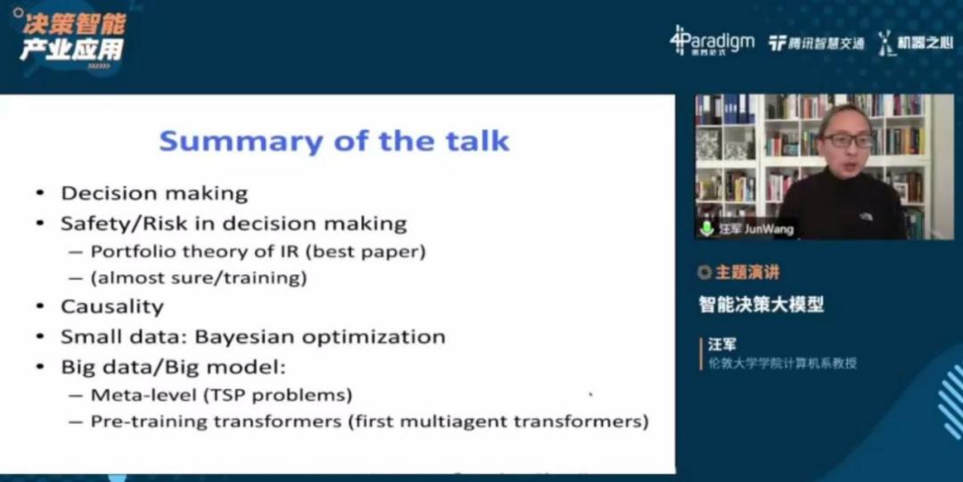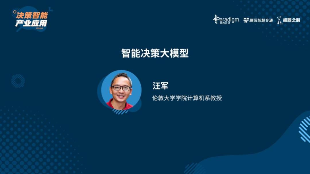 不久之前,在机器之心举办的「决策智能产业应用」在线圆桌论坛上,伦敦大学学院计算机系教授汪军发表了主题演讲《决策大模型》。