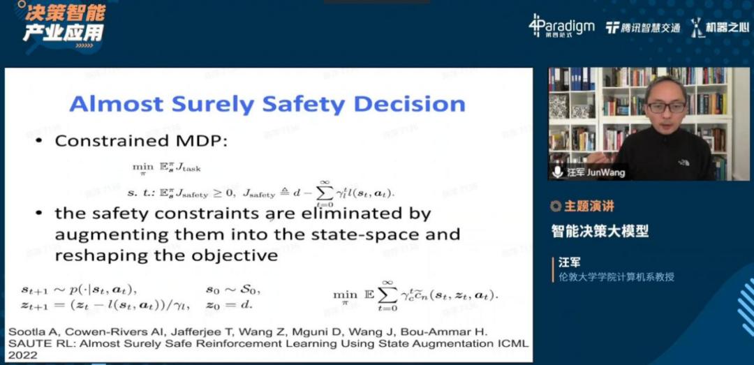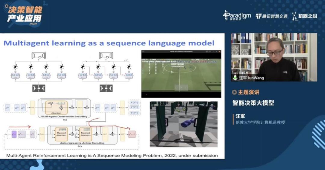 机器之心对汪军教授的演讲内容进行了不改变原意的整理。感兴趣的小伙伴可以点击阅读原文查看回顾视频。谢谢机器之心的邀请,我今天分享的题目是《决策大模型》。首先我将要介绍我们在决策智能领域做的一些研究,同时我认为大模型很重要,它代表了其在现在技术上的一个思路,不管从技术突破层面,还是实际应用层面,大模型可能给大家带来不一样的东西,同时大模型也有不足之处,学术界、工业界也在不断地推进大模型发展,所以这是一个不断发展的研究领域,最后我会点题大模型。