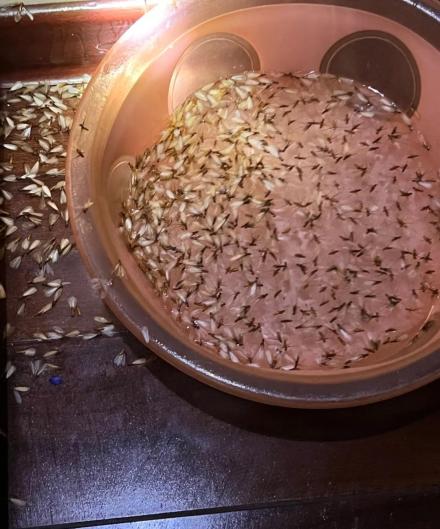 对于已飞进屋里的大水蚁,可以用盆装上适量水,摆放在开着的灯泡或光管下面,大水蚁就会自觉落入水中“自杀”。