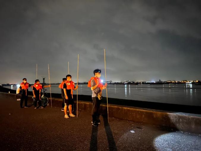 6月22日凌晨,三水北江大堤上的守夜人。据@广东天气消息