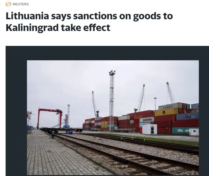 立陶宛称对加里宁格勒制裁生效 图:路透社报道截屏